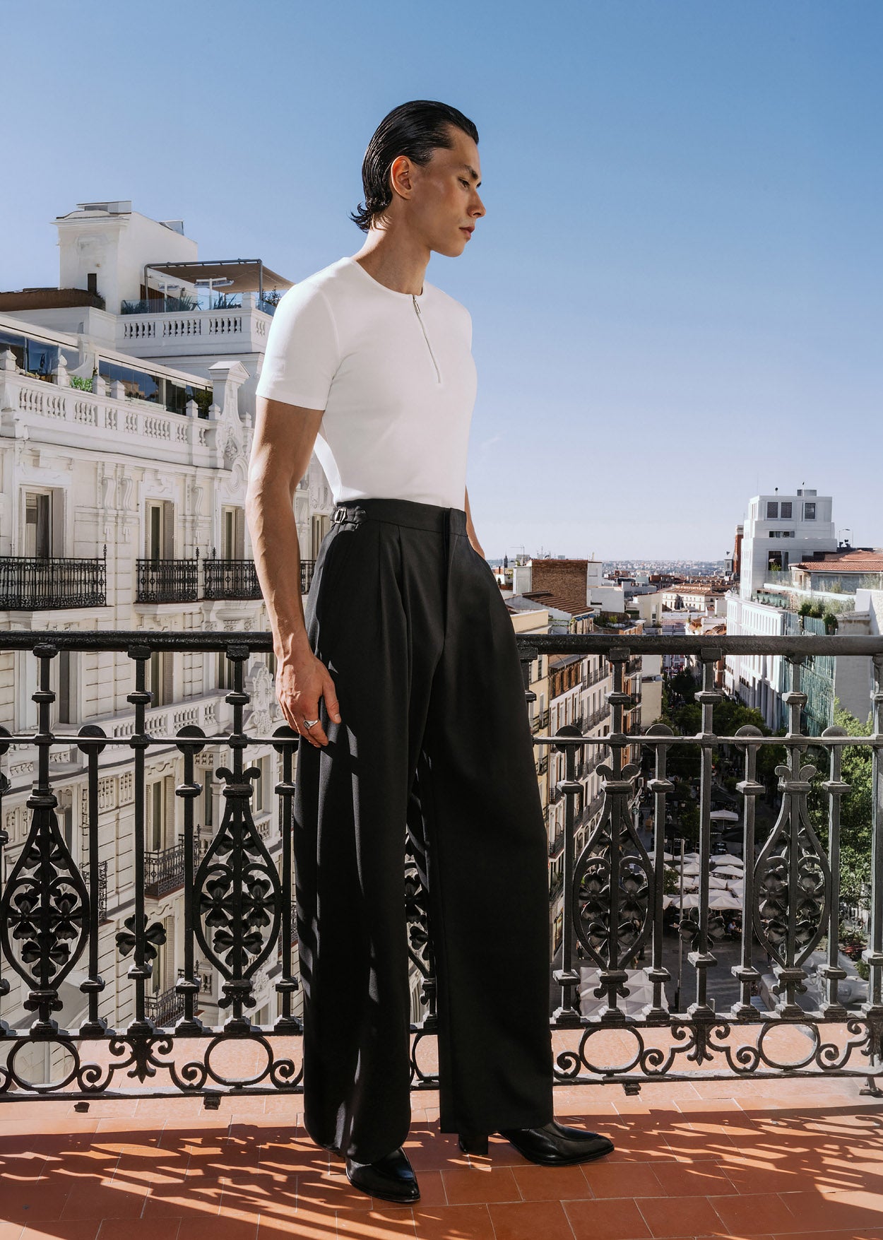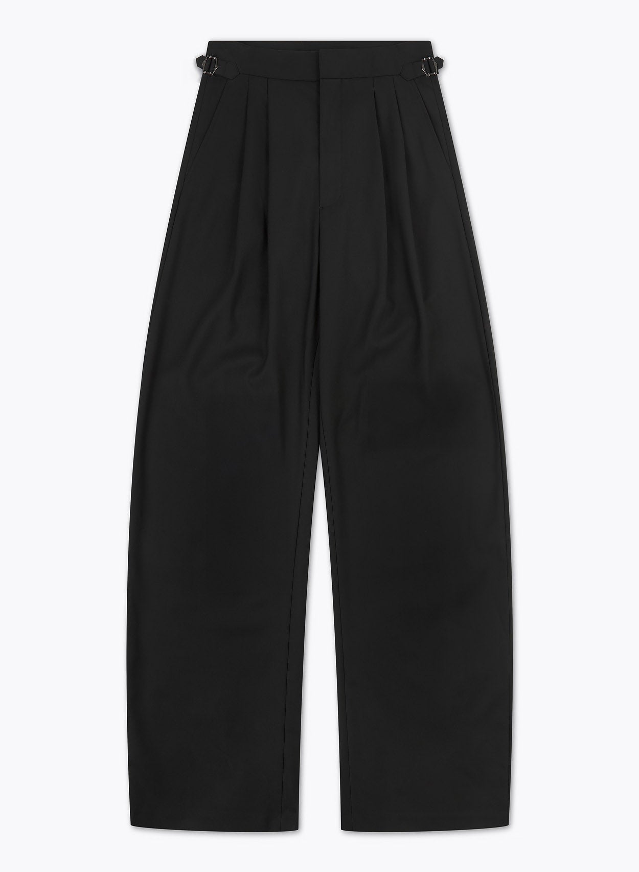 A confident redefinition of tailoring. These trousers are crafted from a luxurious wool blend, providing a refined structure and a gentle flow.. The defining feature is the barrel leg silhouette, which offers a bold shape with ample volume through the leg. Finished with double pleats and an adjustable side buckle, this piece delivers an adjustable fit and a strong aesthetic.