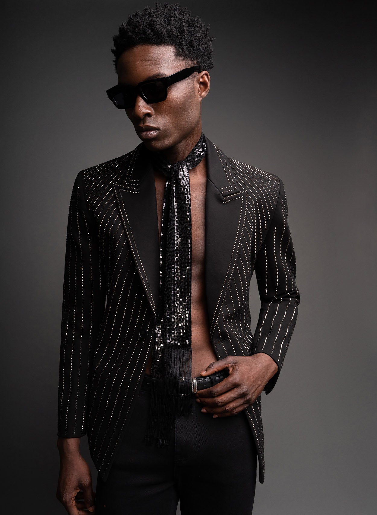 Add a touch of glamour to your outfit with this black sequin scarf. The shimmering sequin detailing catches the light, while the soft fabric ensures comfort. Finished with long, flowing tassels, this piece combines elegance with a playful edge, perfect for evening wear or bold styling.