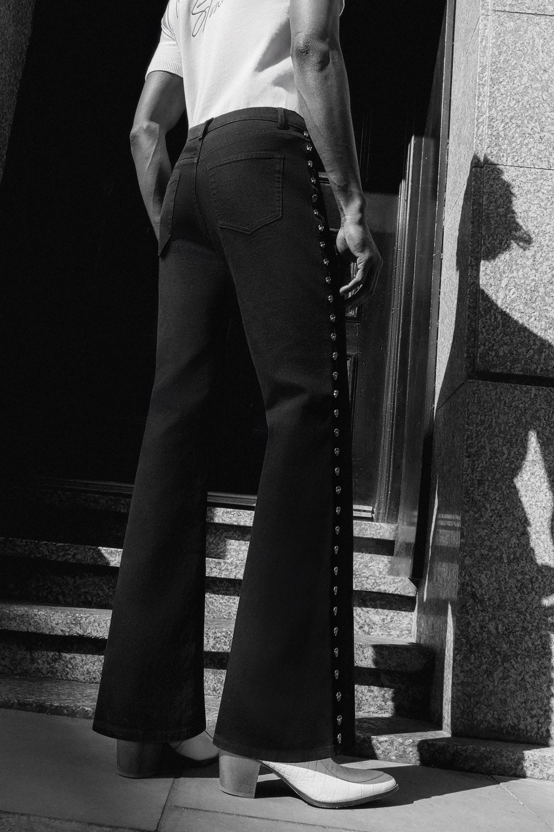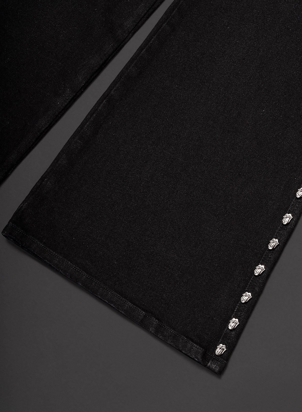 – Exclusive Rolling Stones black leg studded logo denim flares