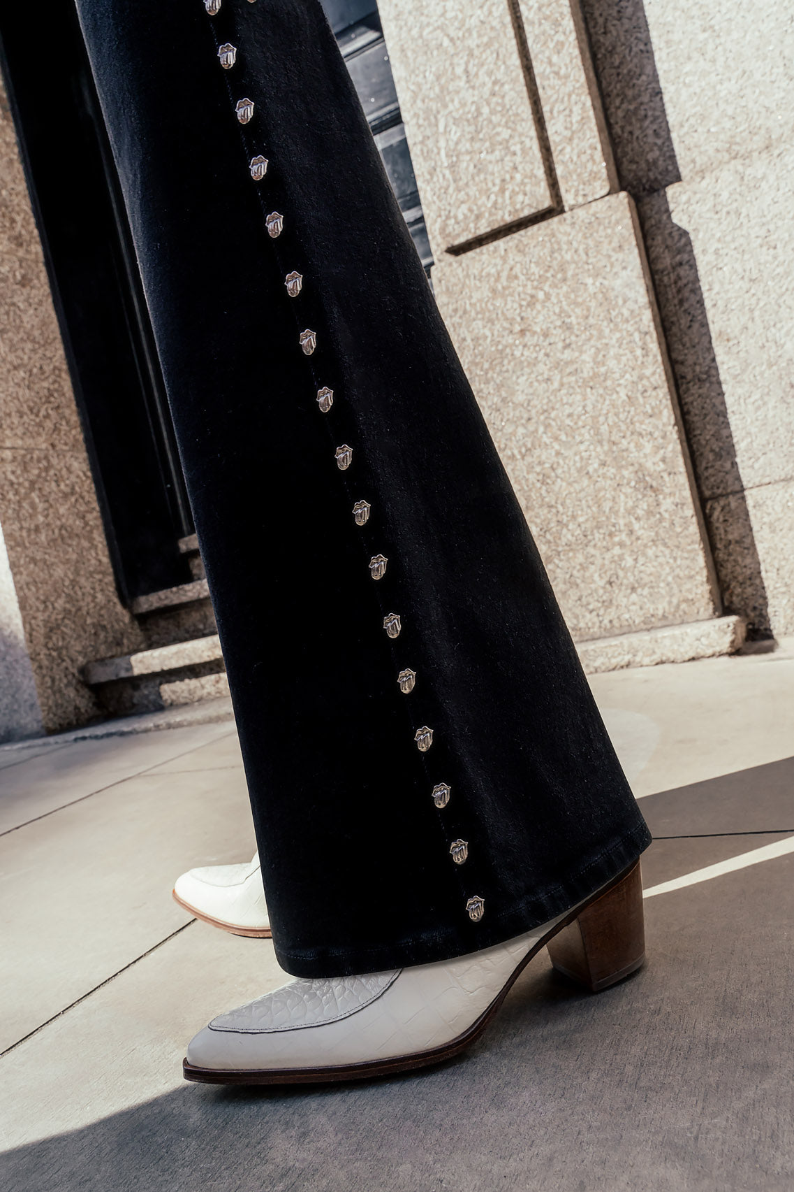 Phix X Rolling Stones Black Leg Studded Logo Denim Flare