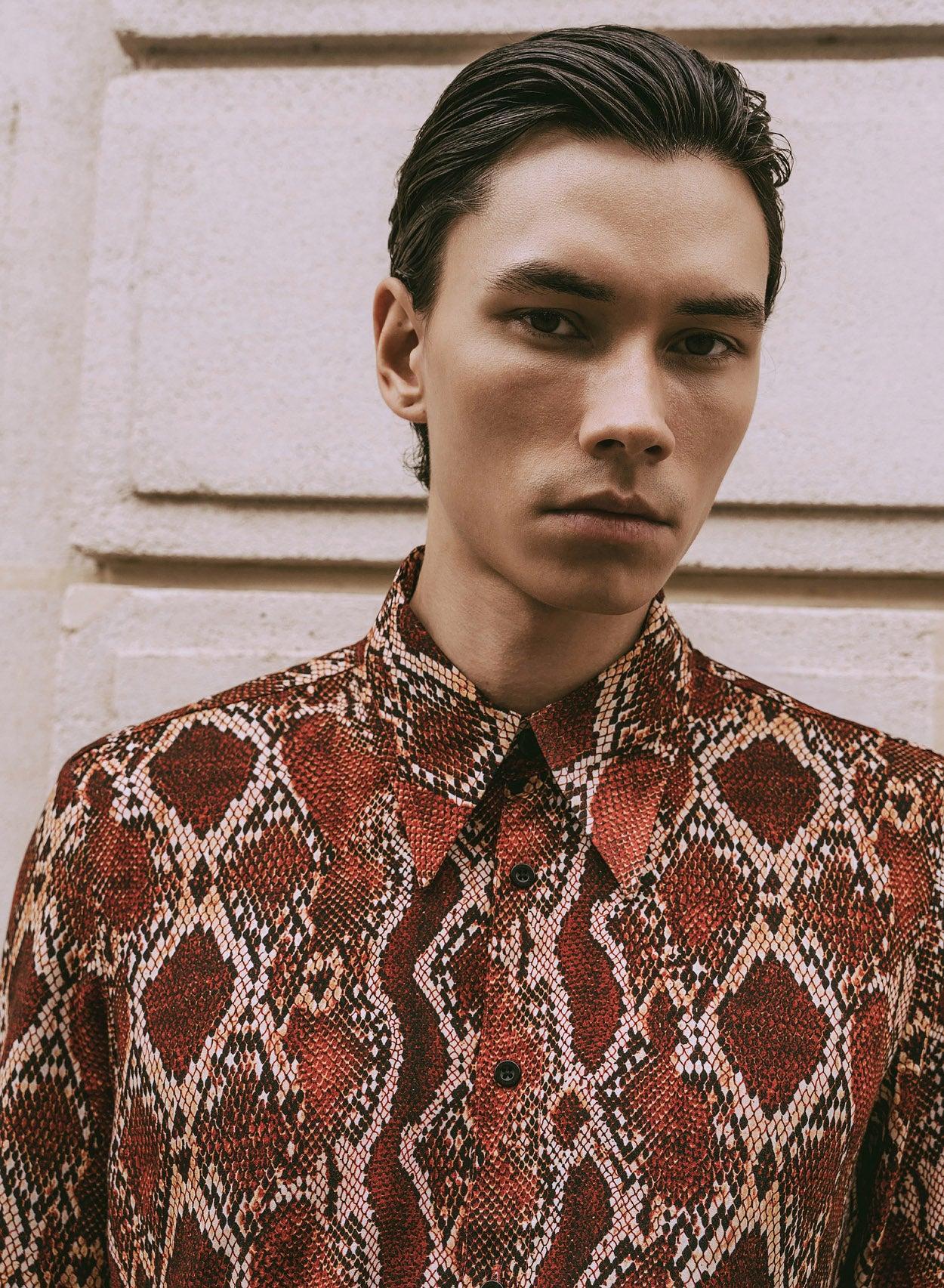A bold aesthetic. A sophisticated execution. This long-sleeved shirt, with its captivating snakeskin print in a striking palette of reds and browns, commands attention. Crafted from a soft viscose for a fluid drape and excellent breathability, its sharp pointed collar and clean silhouette provide a refined edge to the powerful pattern, ensuring an elevated and confident look.